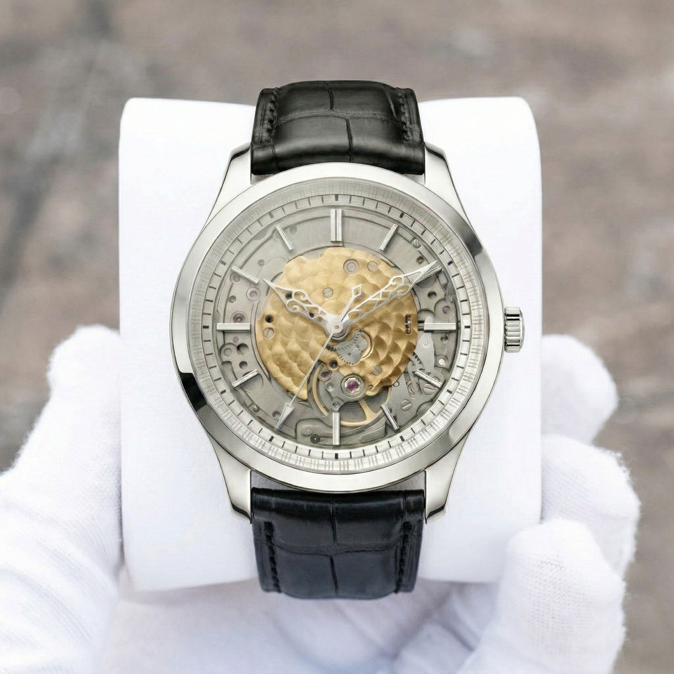 Miyota 90S5 Movement Automatic Mechanical Transparent Skeleton Perlage Watch OEM Customized Logo Manufacturer