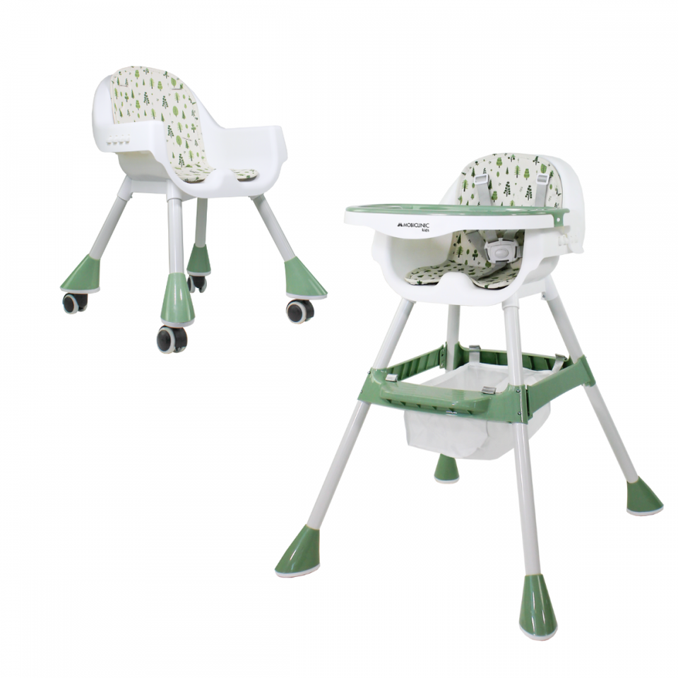 Mobiclinic 2-in-1 High Chair 360º Wheels with Adjustable Heights Tray Storage Maximum Weight 35kg Forest Green for Dining