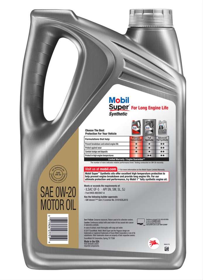 Mobil Super Synthetic 0W-20 , Motor Oil- 5 Quarts Bottle, 4.73 Liters