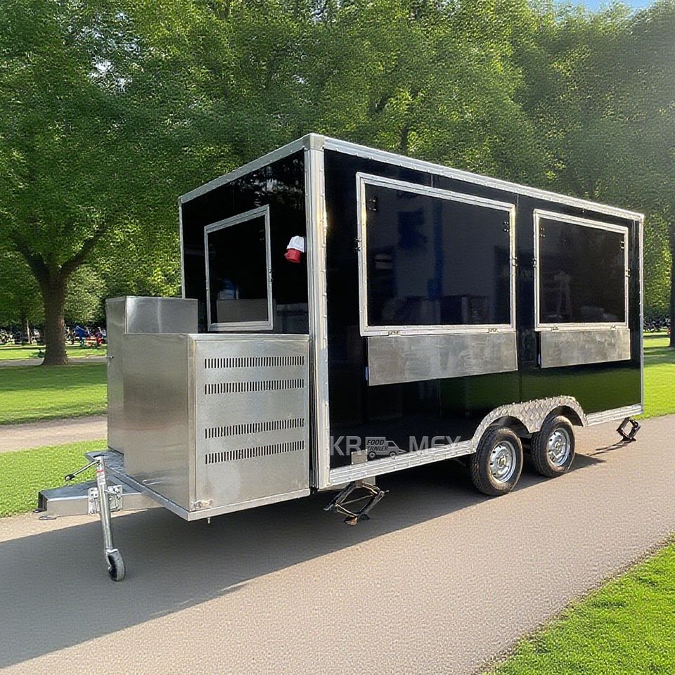 Mobile Cart Towable Food Trailer Ice Cream Setup Cold Storage Full Kitchen Snack Food Candy Chips Street Vendors Winery