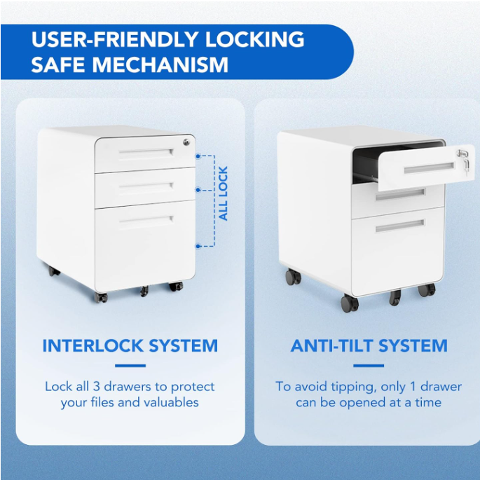 Mobile Custom Metal Locker with Lock 3 Drawer Steel Round Corner Cabinet