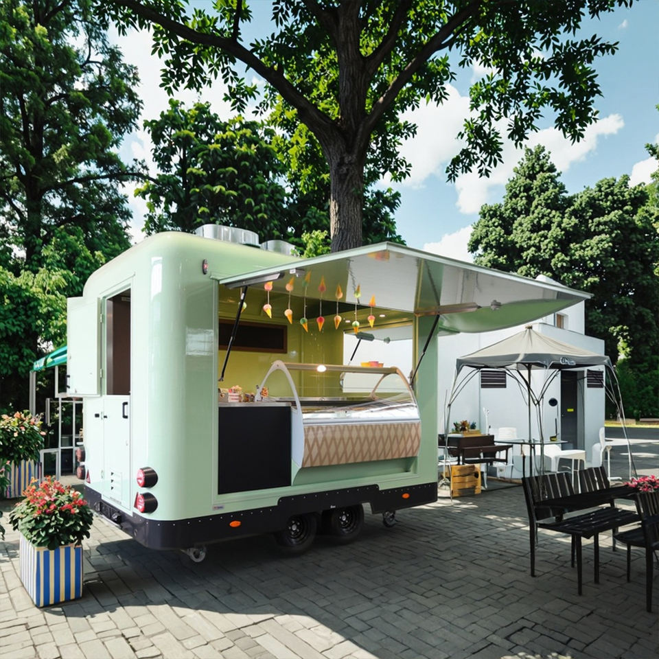 Mobile Fast Food Snack Stainless Steel Food Kiosk Vending Trailer Catering Bakery Pizza BBQ Coffee Juice Food Truck
