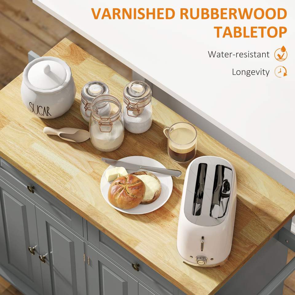 Mobile Gray Kitchen Island Cart with Rubber Wood Top Spice/Towel Rack Storage Drawers for Dining Room