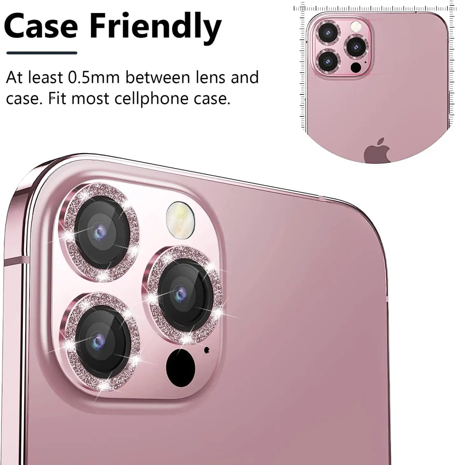 Mobile HD Imaging Shinning 3D Tempered Glass Colorful Metal Diamond Frame Lens Camera Protector for iPhone 14 PRO MAX 6.7 6.1