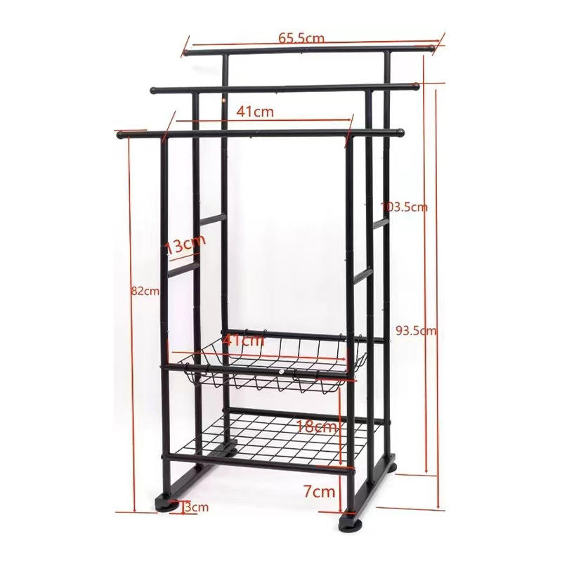 Mobile Hanging Clothes Display Stand Entryway Standing Coat Rack Movable Laundry Basket Space-Saving Foldable for Home Office