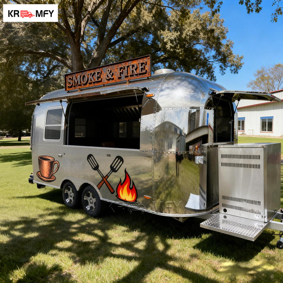 Mobile Kitchen Trailer Towable Food Trailer Fully Equipped Concession Food Trailer Stainless Steel Snack Food Candy Street