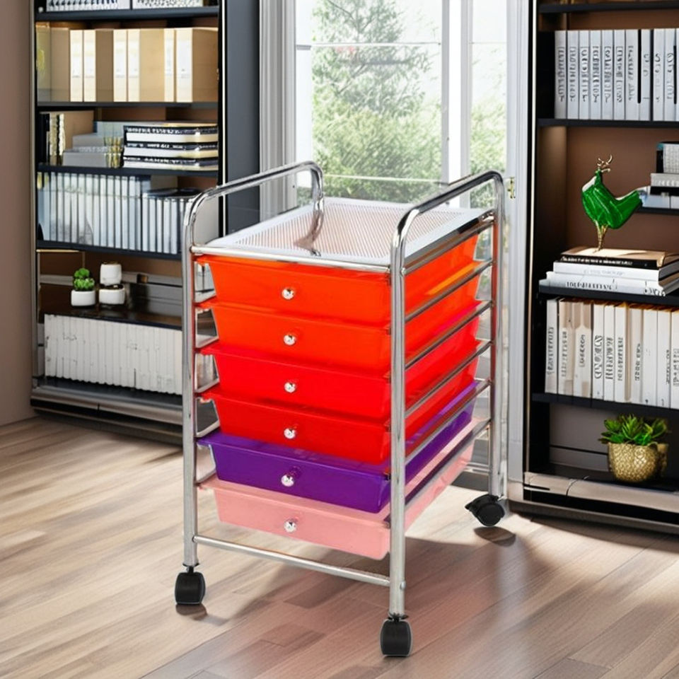 Mobile Office Supply Cart 6-Drawer Rolling Trolley Storage Organizer