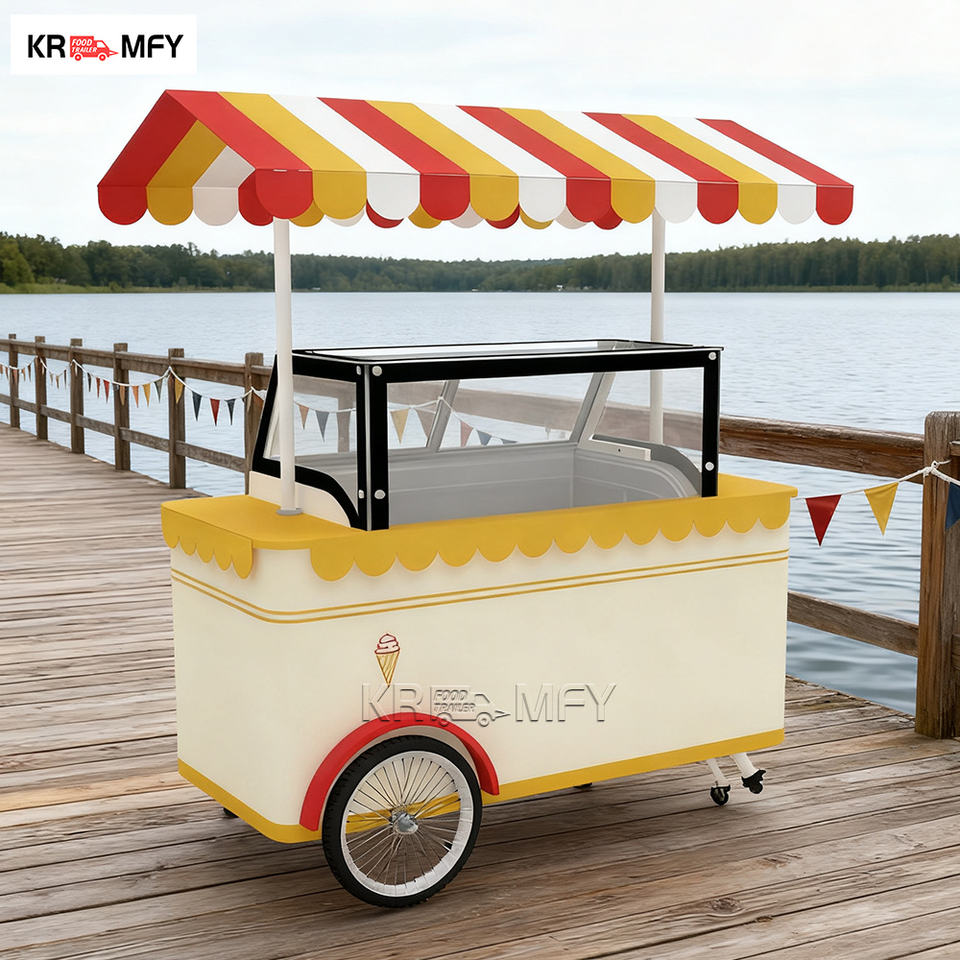 Mobile Towable Ice Cream & Gelato Vending Cart with Metal Construction Rust Resistant 2-Wheel Design for Outdoor Use