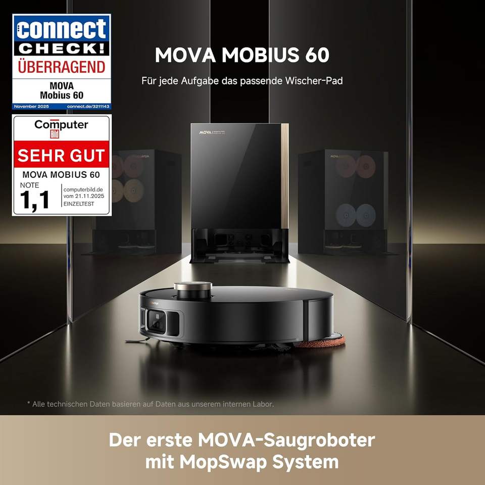 Mobius 60 Robot Vacuum Cleaner with MopSwap System, 30,000 Pa Suction Power, Dynamic Suction Retention System, Obstacle Crossing