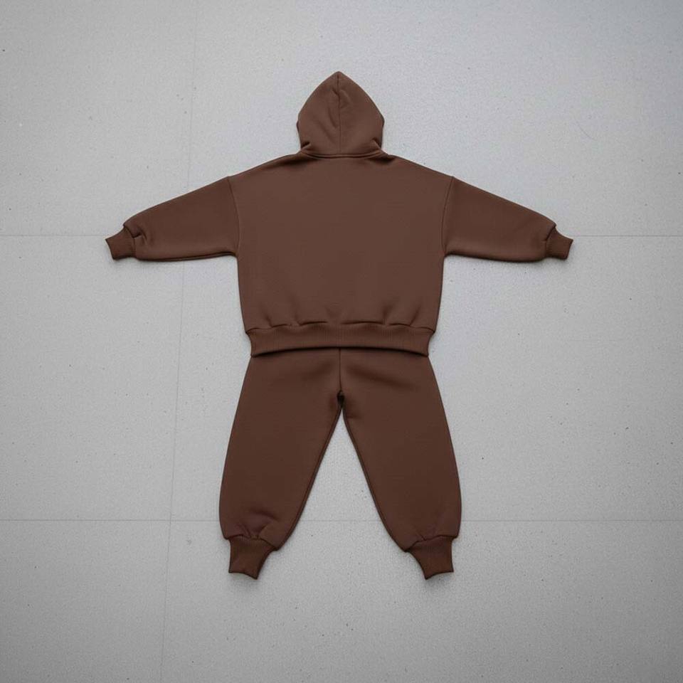 Mocha Brown Women Tracksuit Structural Silhouette Skinny Fit Joggers Tight Ankle Cuffs Oversized Rounded Hoodie Two Knee Short