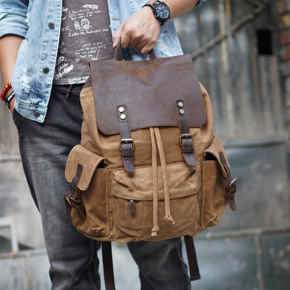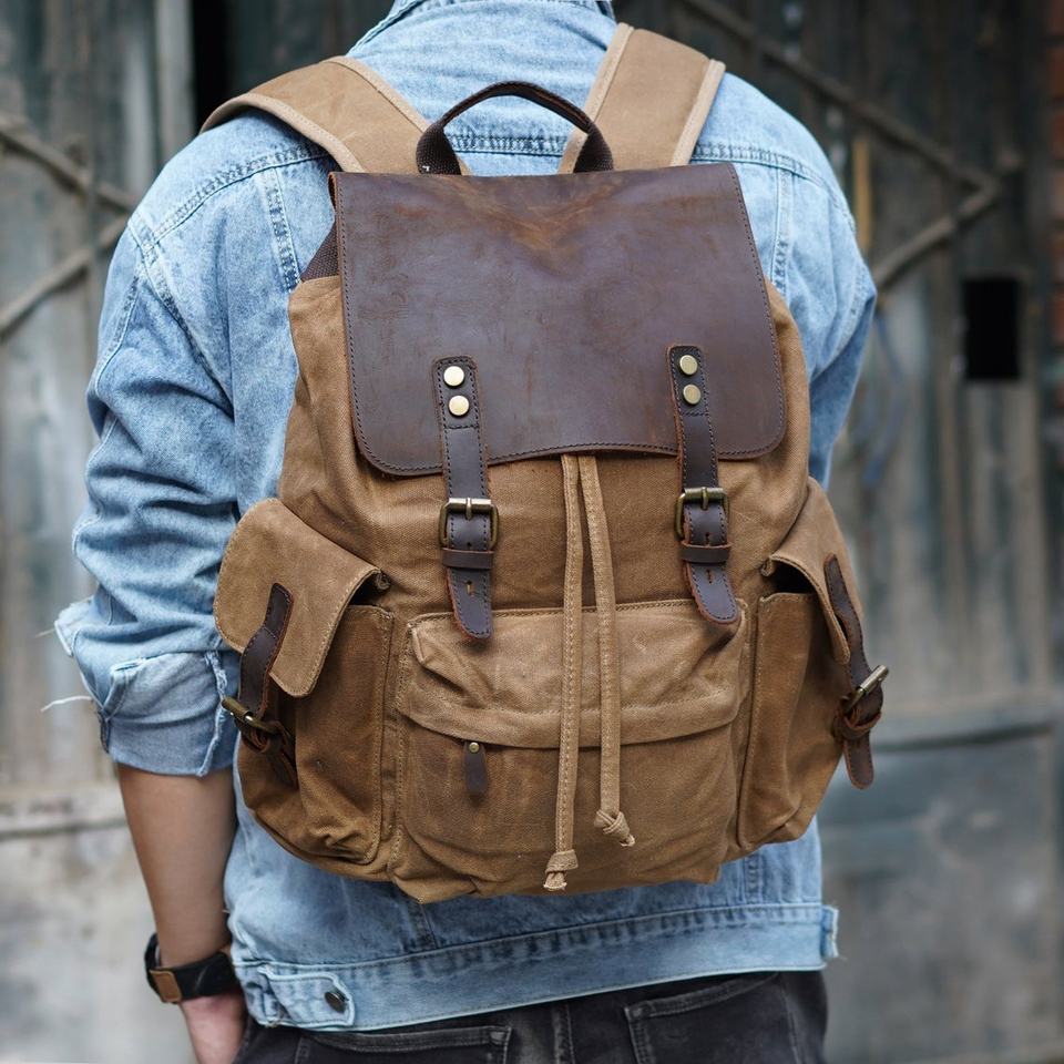 Mochila Men Rucksack Waxed Canvas Backpack JRT-0008 Large Laptop Back Pack Leather Custom Cover Unisex PK TCS Soft Handle 30pcs
