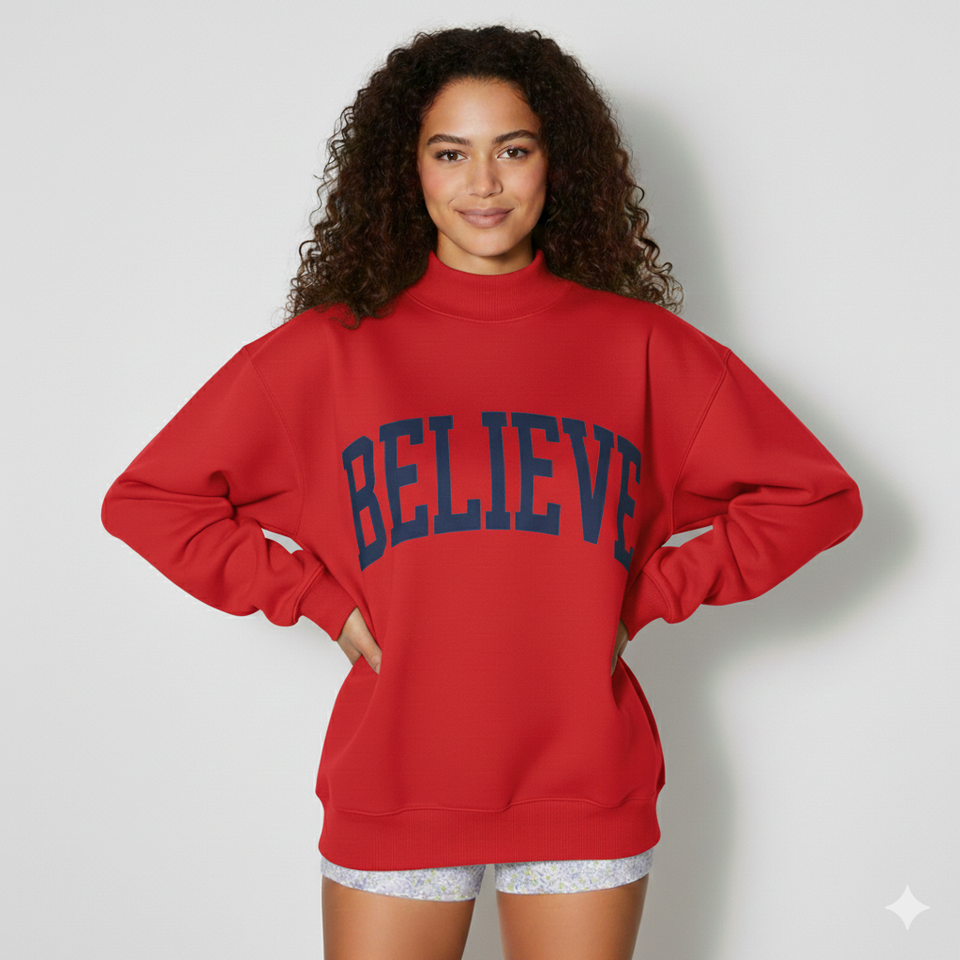 Mockneck Casual Solid Cotton Fleece Autumn Winter Oversize Mock Neck Eco-Friendly Anti-Wrinkle Sweatshirt for Women Long Sleeve