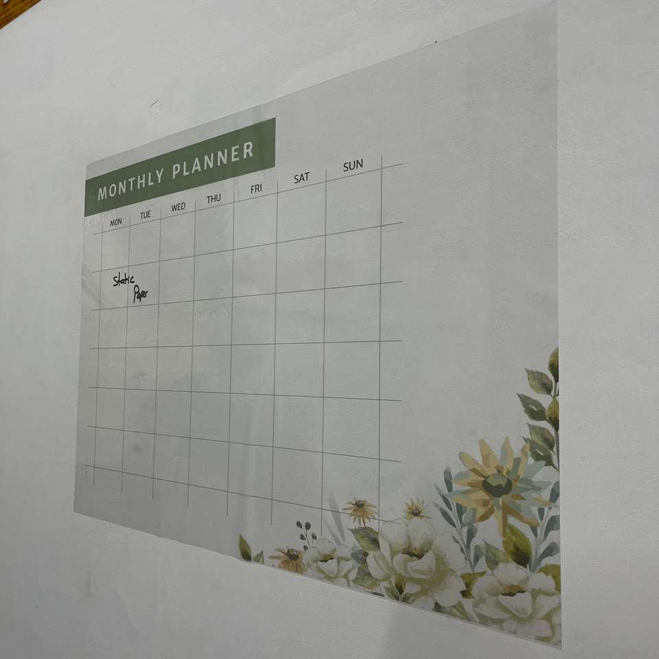Model-16 Reusable Monthly Planner Organizer Durable Polystyrene Glass/Wood Dry-Erase Whiteboard Surface Static Electricity