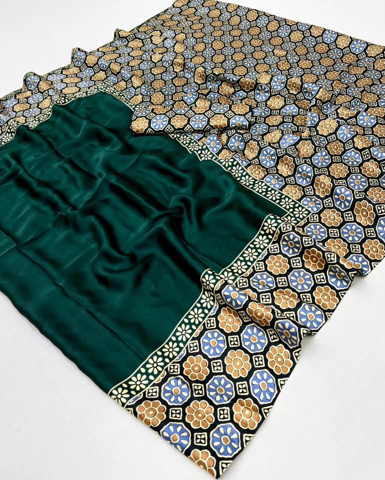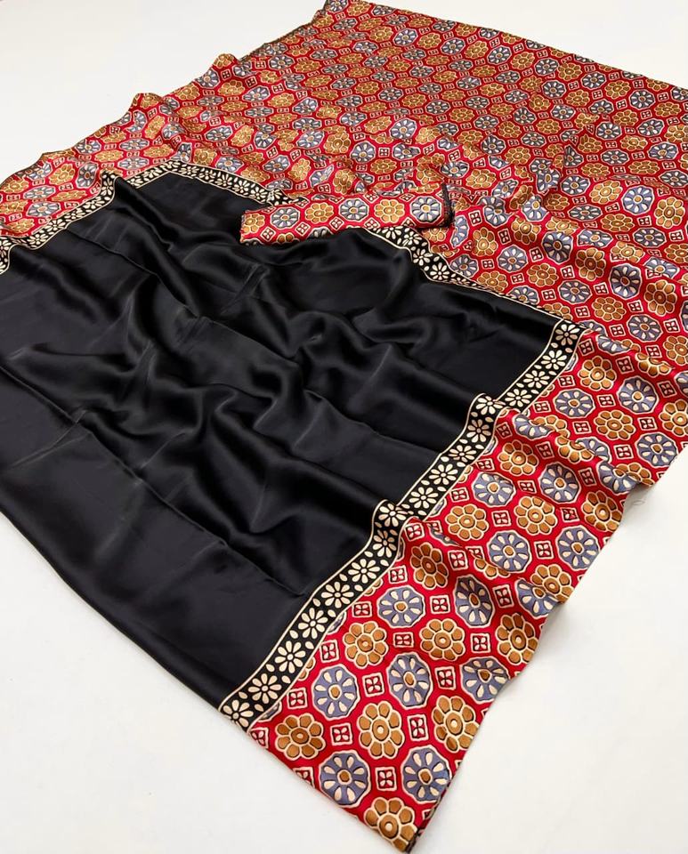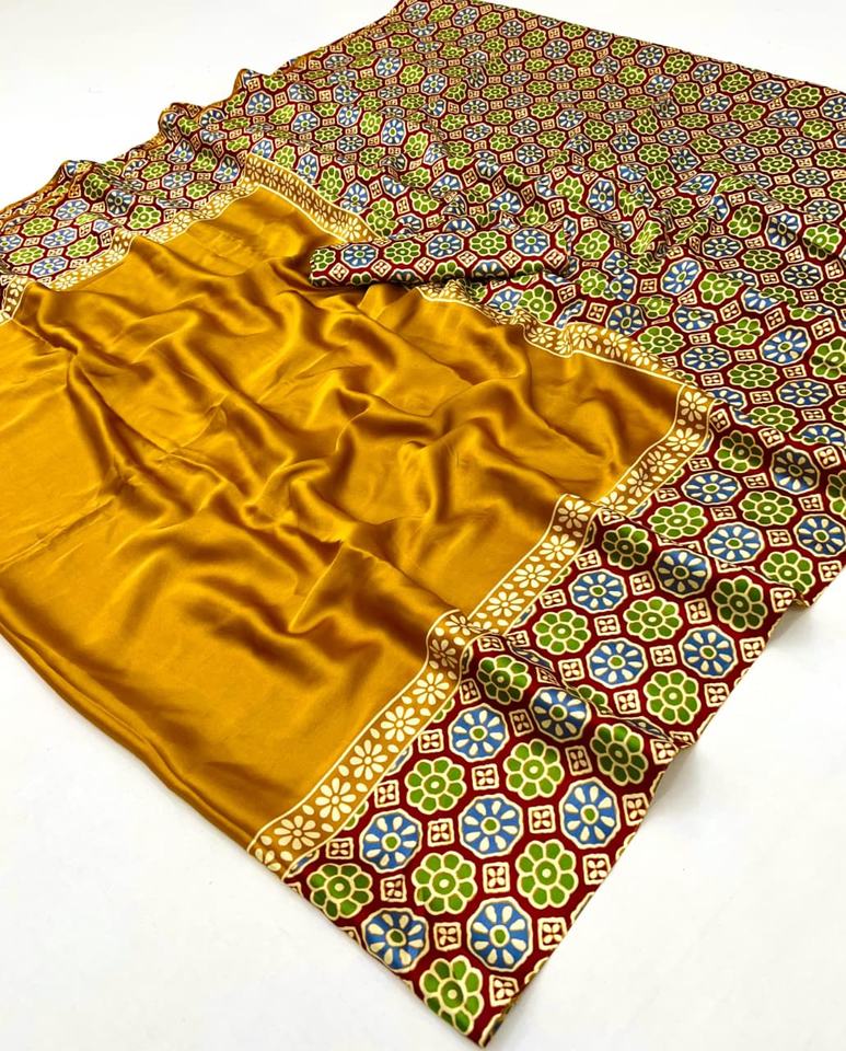 Model Ajrakh Satin Saree for Women Light Weight Ethnic Made in India Saree Clothing for Wedding