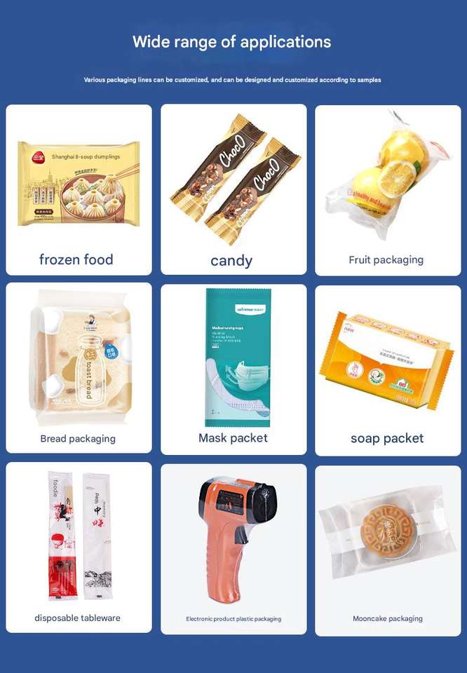 Model High-speed hree-servo Drives Auomaic Up/Down Paper Chocolae Fruis Candy Dinnerware Pillow Packaging Machine
