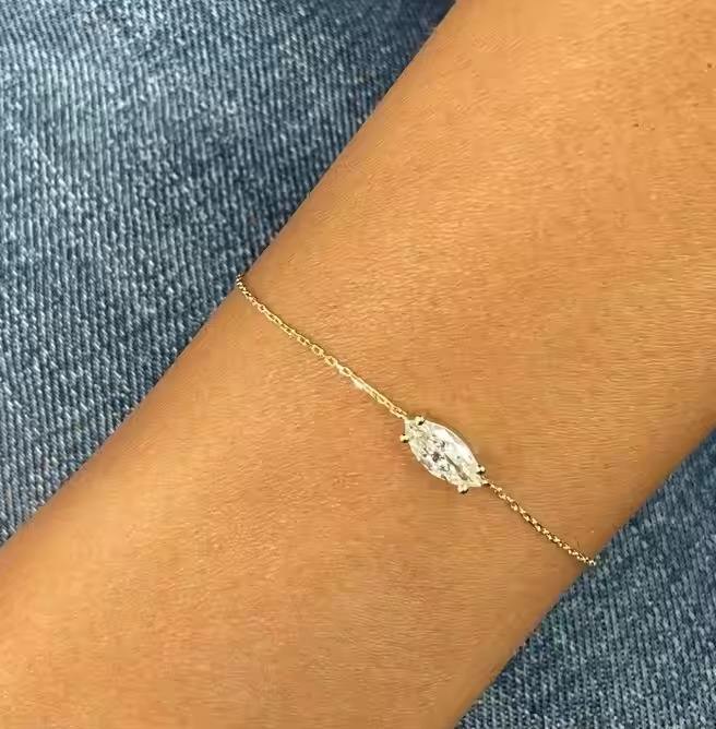 Modern 0.55 Carat Marquise Moissanite Bracelet Classic Solitaire 14k Yellow Gold Chain Versatile E/VS1 Clarity Gift