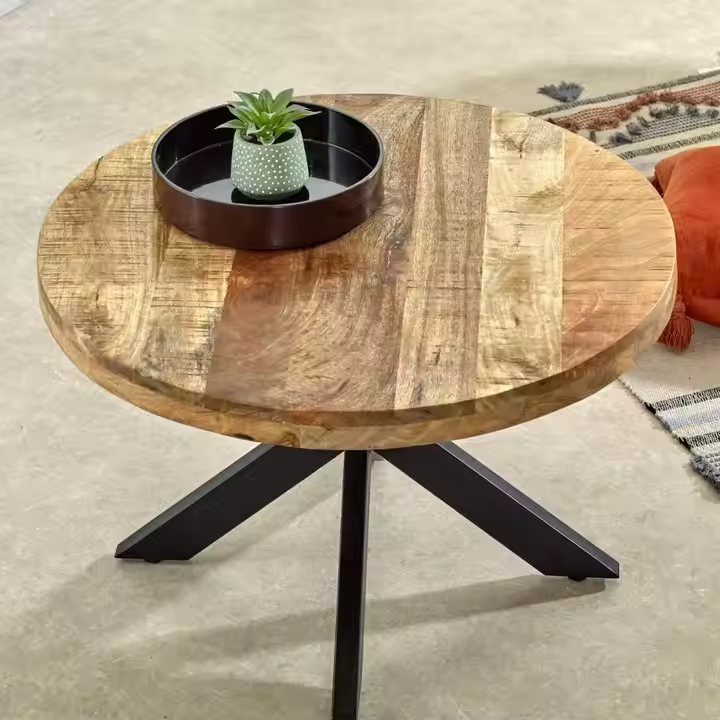 Modern 1-Tier Storage Shelf Easy Assembly Round Coffee Table with Wood Desktop and Metal Frame for Living Room Center Table