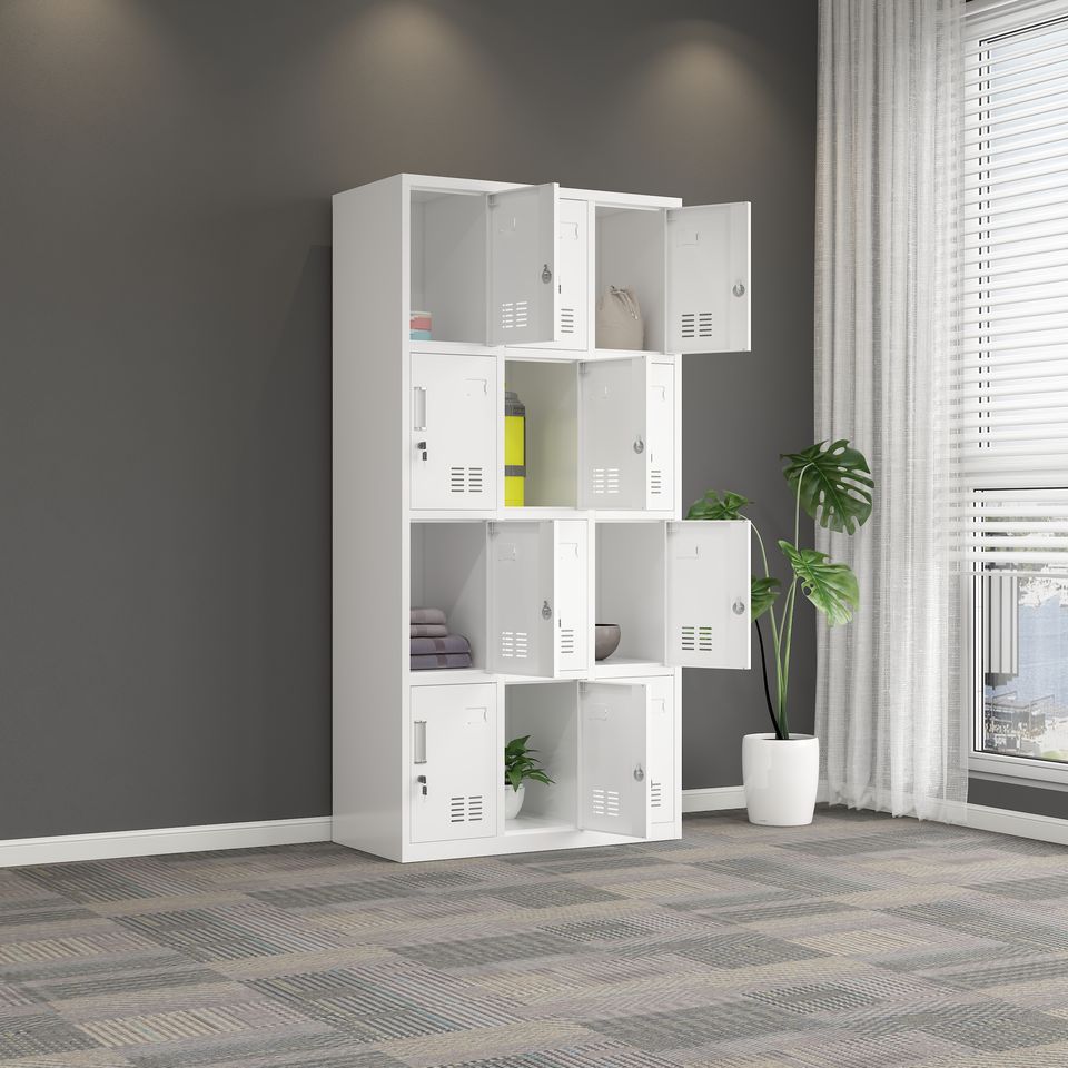 Modern 12-Door Multi-Tier Iron Locker for Office School Bedroom or Kitchen Metal Wardrobe Cabinet for Clothes Storage