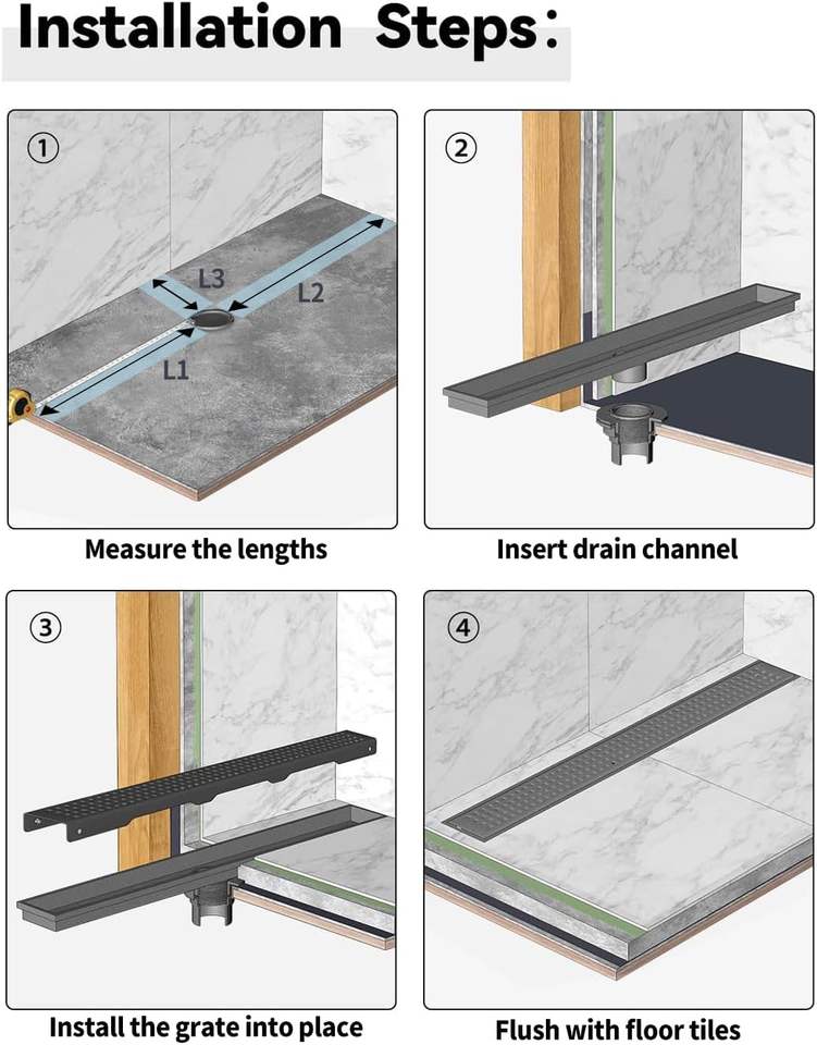 Modern 12 Inch 304 Stainless Steel Shower Floor Drain with Grate Removable Adjustable Leveling Feet