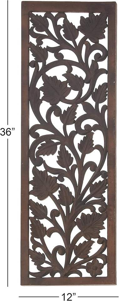 Modern 12\" X 1\" X 36\" Brown Acanthus Intricately Carved Wooden Floral Wall Sculpture Handmade Home Wall Decor for Weddings