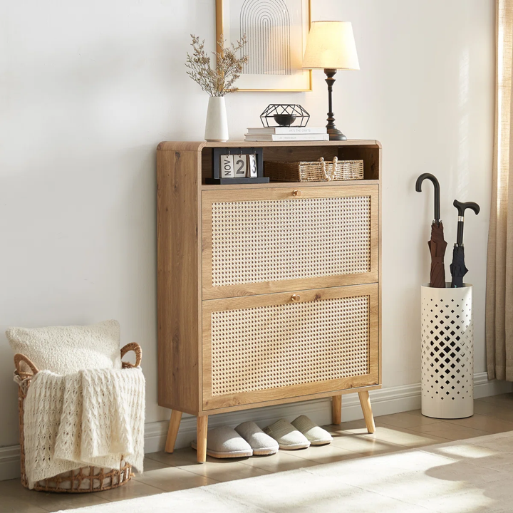Modern 16-Pair Free Standing Solid Wood Shoe Storage Cabinet with 3Flip Extendable Entryway Bench for Hotels or Living Room