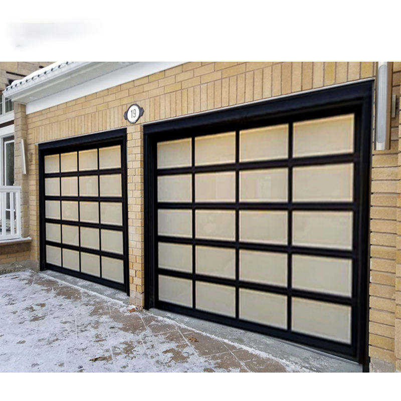 Modern 16x8 Tempered Mirror Glass Automatic Sectional Commercial Aluminum Frameless Double Garage Doors