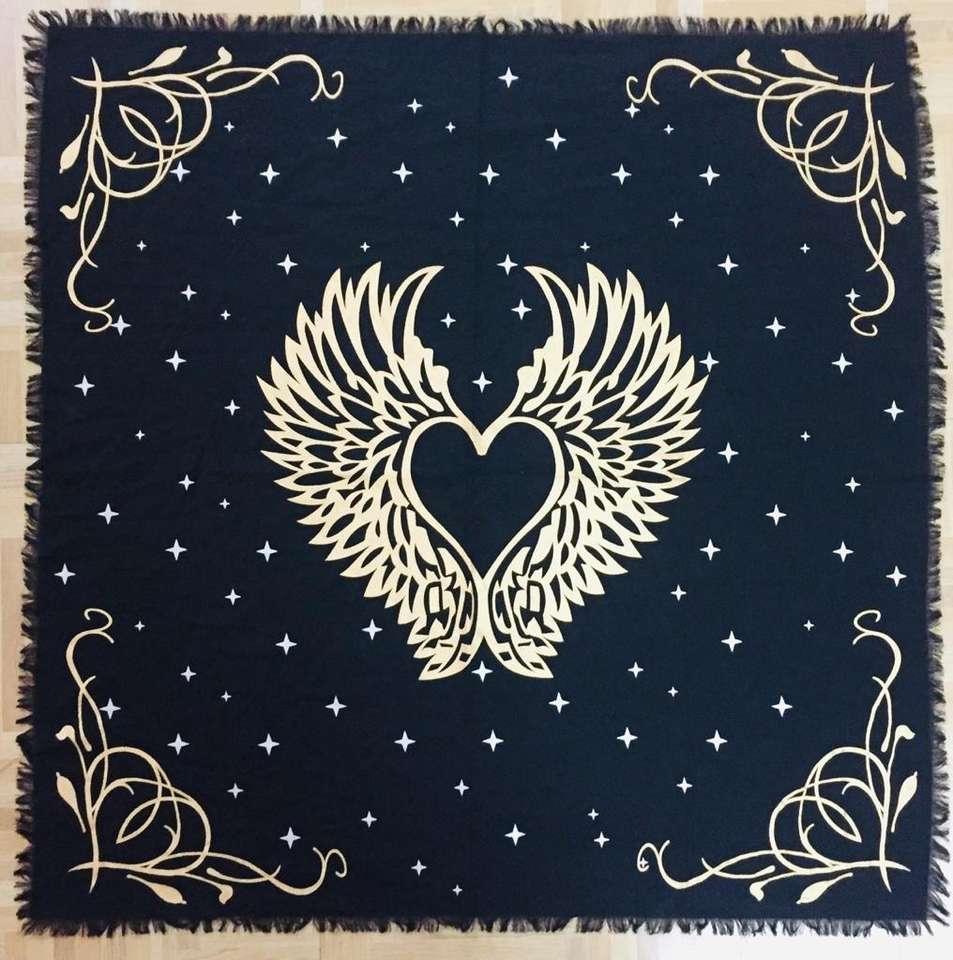 Modern 18 Inches Handmade Cotton Table Cloth Cover with Heart Angel Wings Black Gold Tarot Spread for Indian Consigners