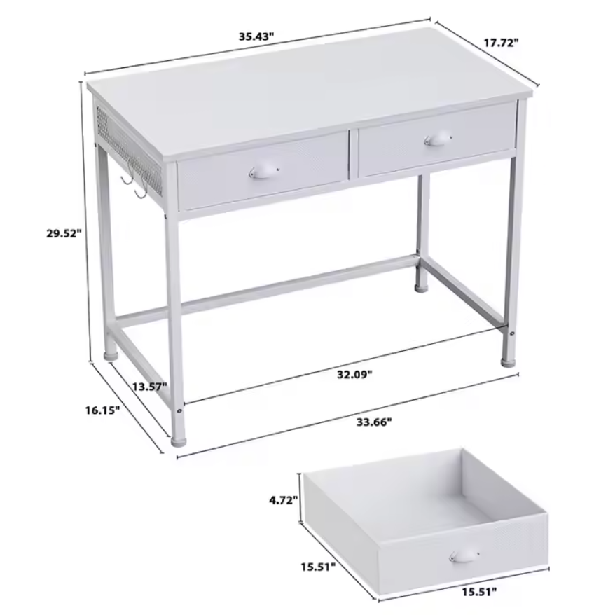 Modern 2 Fabric Drawer Vanity Desk 32in Small Makeup Table Factory Custom White Dressing Table for Living Room Cosmetics Storage