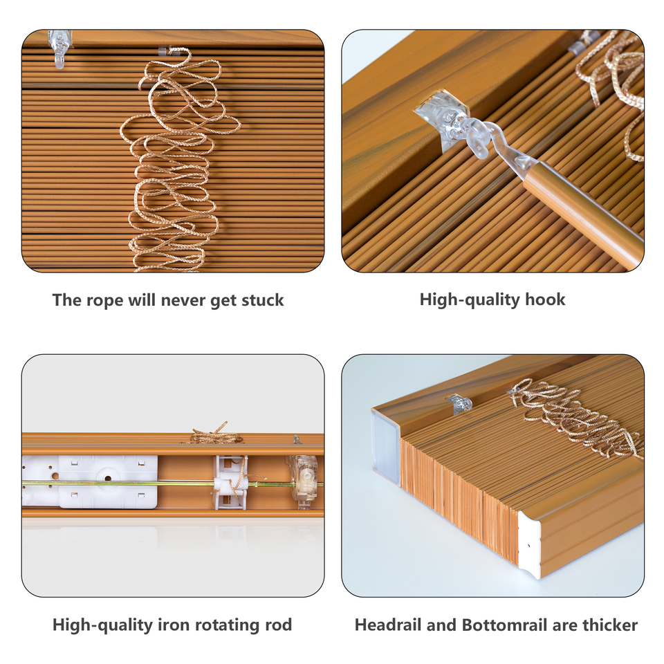 Modern 2-Inch Faux Wood Venetian Blinds Cordless Built-In Light Filtering Durable Anti-Uv Decorative Features