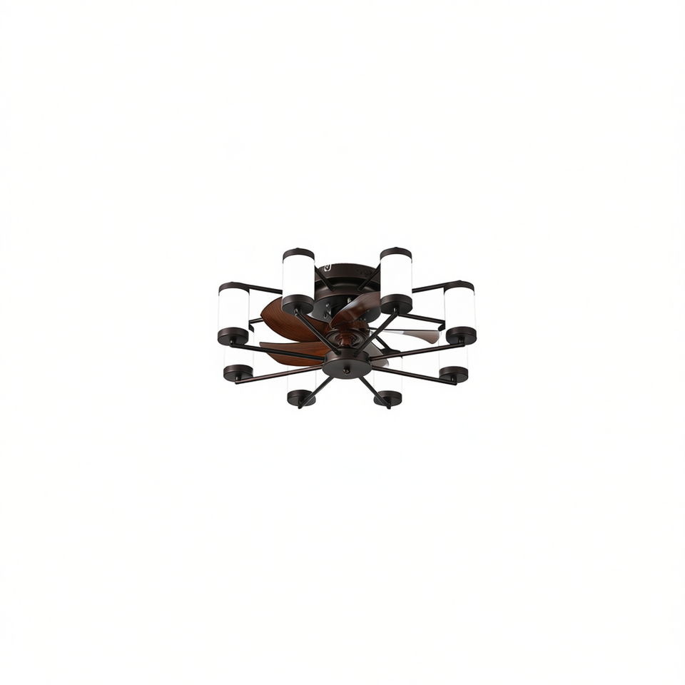 Modern 22-Inch Brown Iron LED Ceiling Fan 5-Blade With Cylindrical Lights For Bedroom Living Room Home Decor