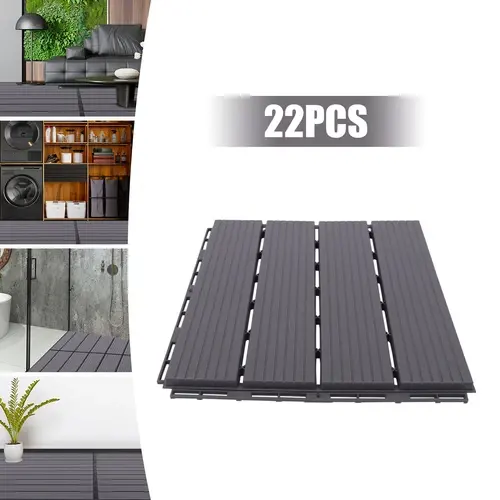 Modern 22 PCS 12\" X 12\" Interlocking Deck Tiles for Outdoor Patio Waterproof Plastic Wood Grain for Basement Made ACacia Teak