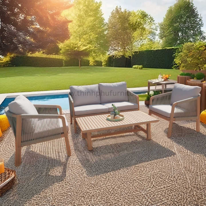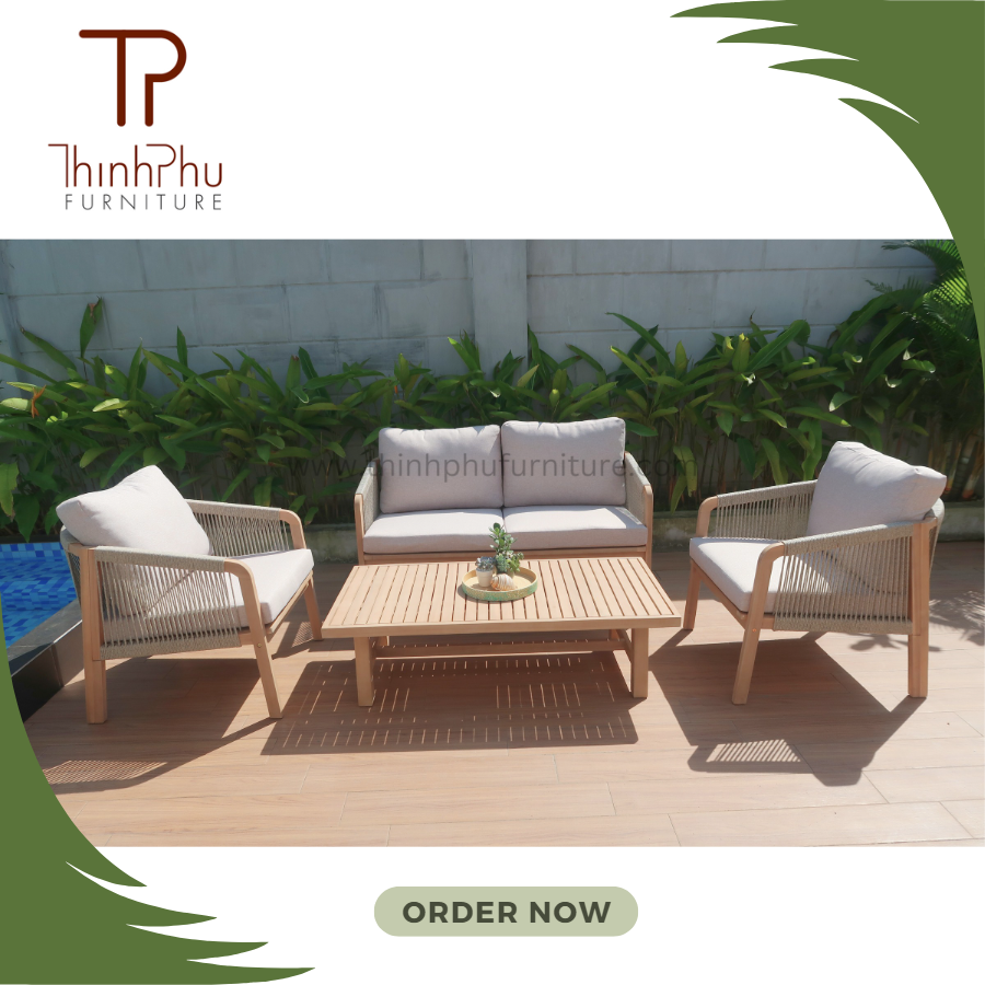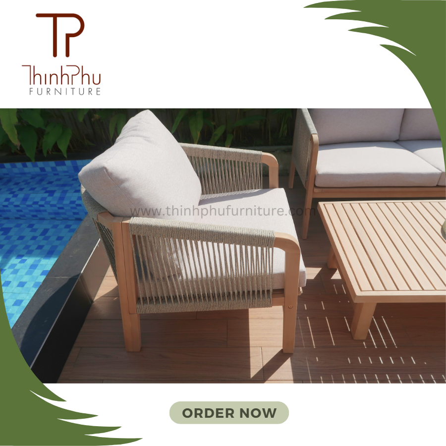 Contemporary 230gr Fabric Wooden Frame Outdoor Sofa Set Modern Sectional Lounge Chair for Patio Garden for Hotels Villas Rattan