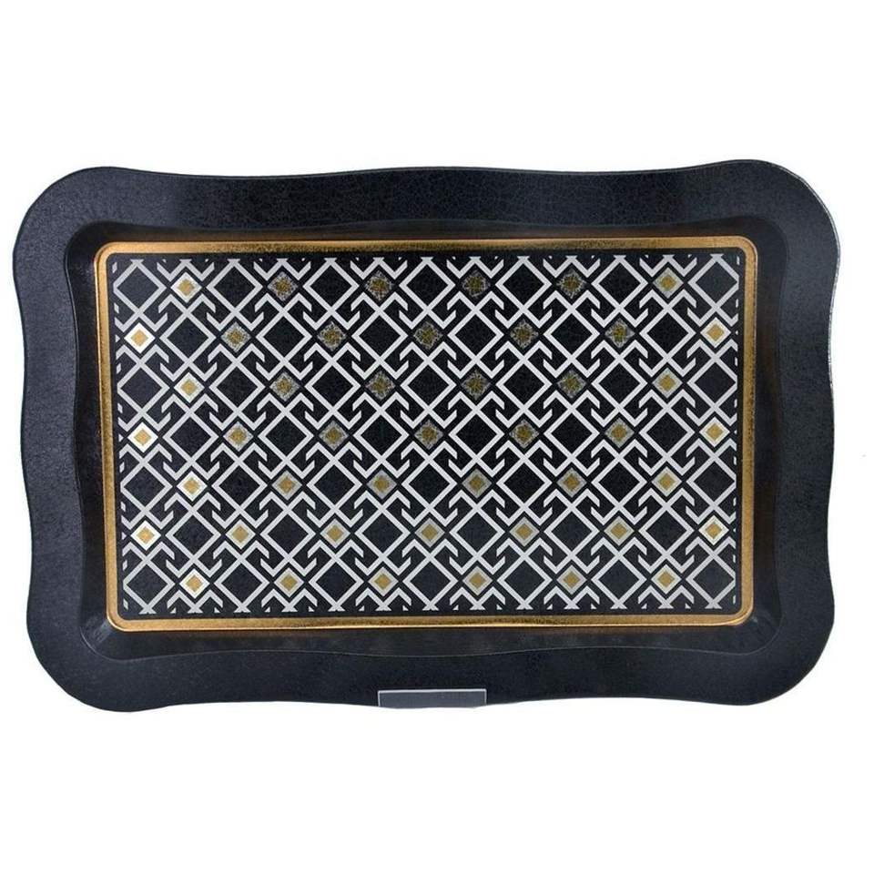 Modern 238x358 mm Rectangular Metal Serving Platter Tray Wavy Edge Seamless Pattern Design with Geometric Lines Black Background