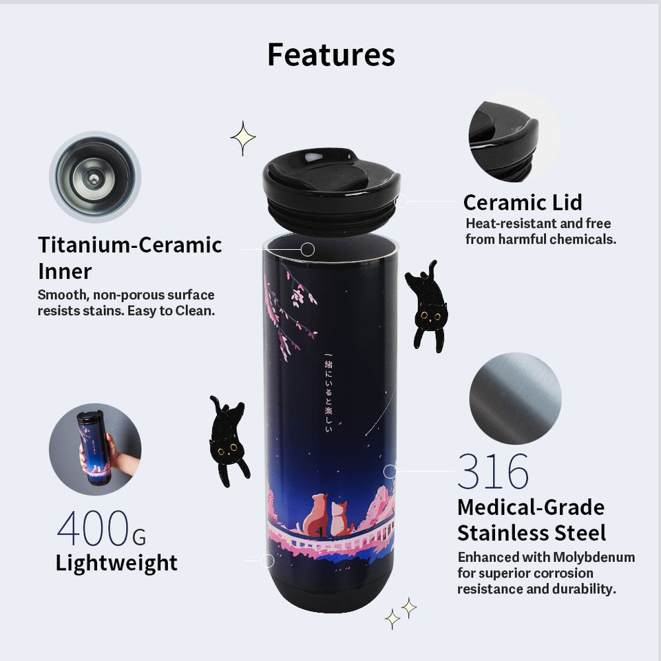 Modern 24oz Portable Bottle Ultra-Light Vacuum Flask Titanium SUS 316 Ceramic Coating Slim Body Stainless Steel Tumbler MARU