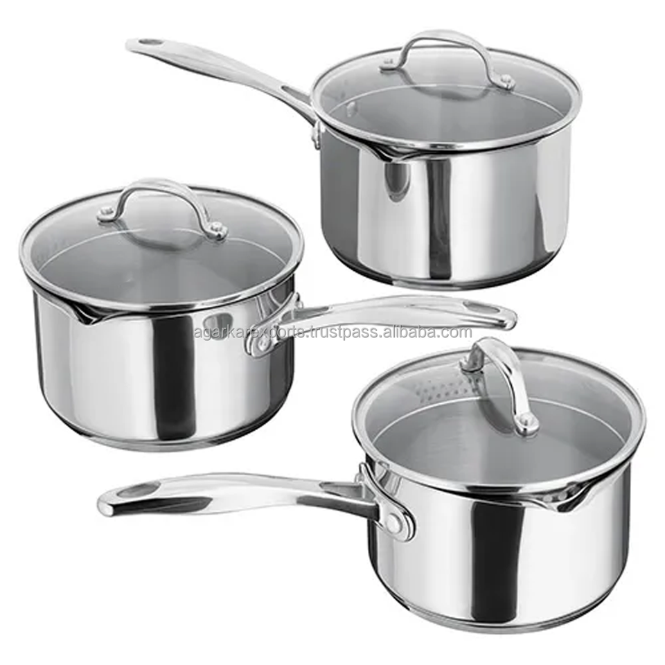 Modern 2L Stainless Steel Saucepan Heavy-Duty Heat-Resistant Mirror Finish Glass Lid Gas & Induction Ready High Quality Cookware