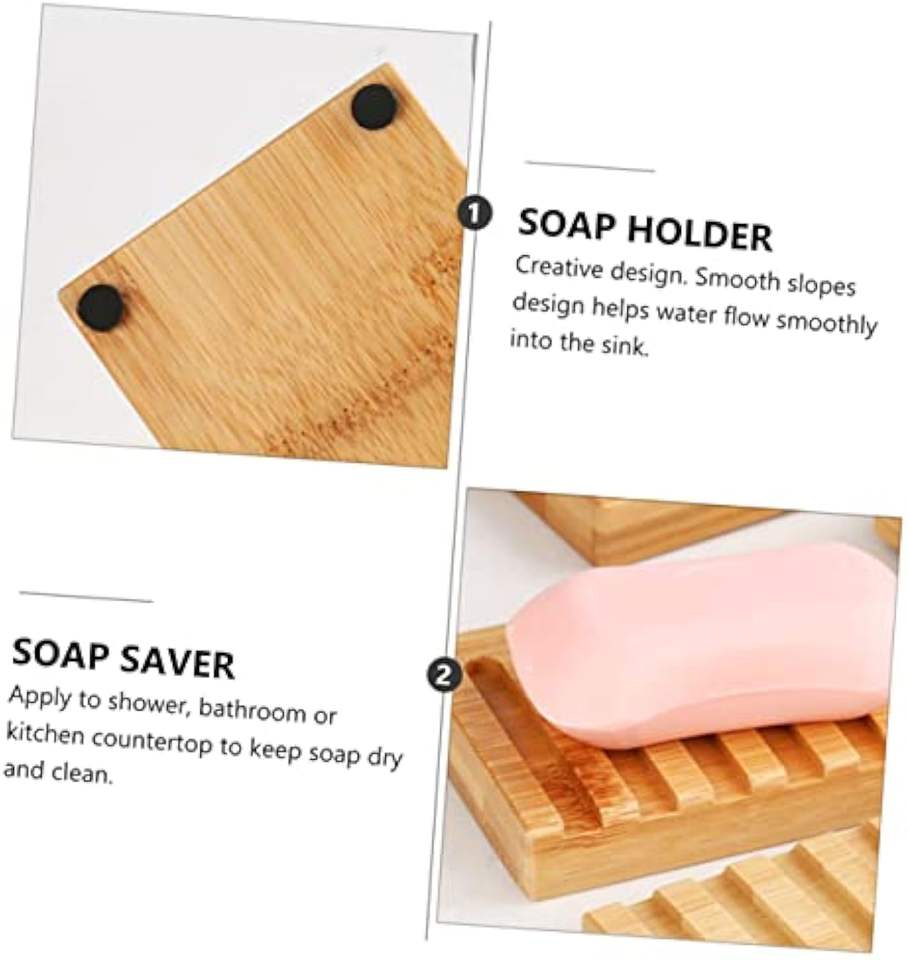 Modern 2pcs Natural Bamboo Soap Dish Set Self-Draining Shower Soap Tray Bathroom Soap Holder for Kitchen Sink