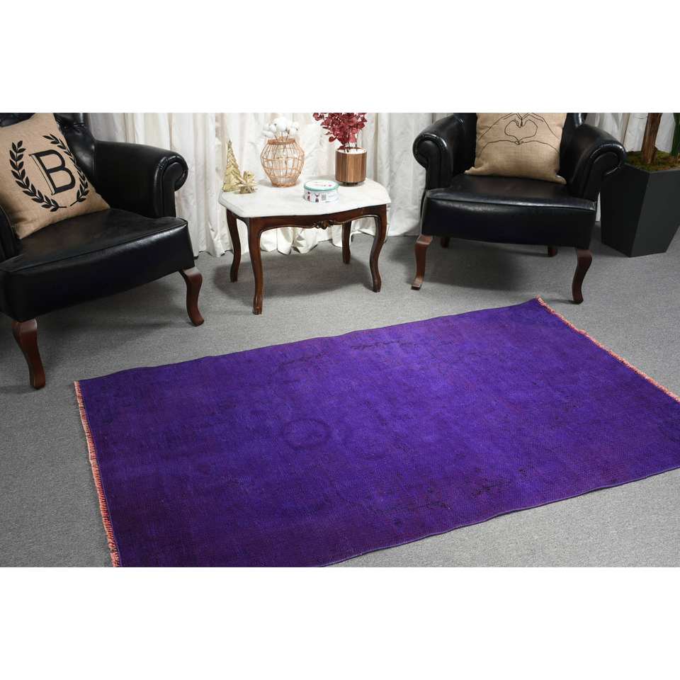 Modern 3.7 X 6.1ft Purple Kilim Rug Turkish Wool and Polyester with Patchwork Design for Living Room or Bedroom