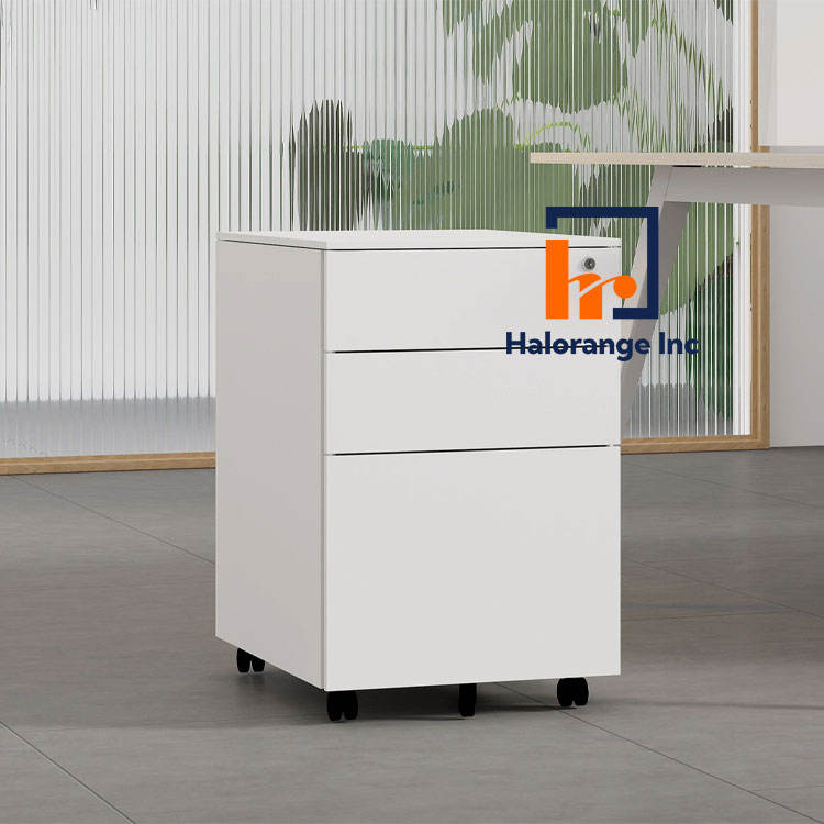 Modern 3-Drawer Mobile Pedestal Cabinet Curved Edge Side-Pull Handle Durable Steel Office Furniture for Home Office School Use