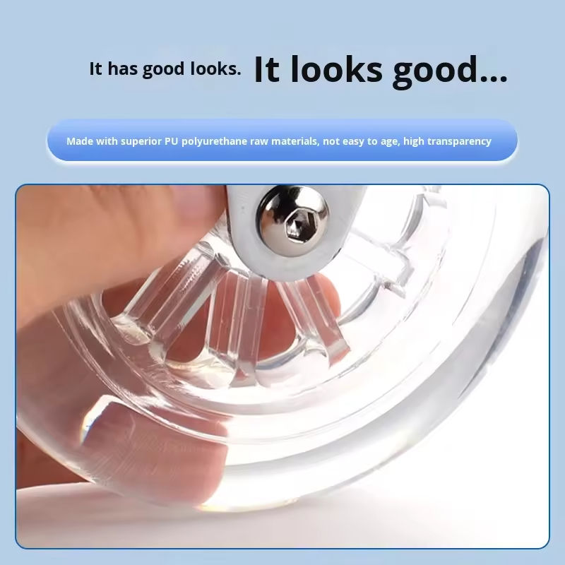 Modern 3-Inch Lightweight Furniture Caster Universal Wheel Base Smooth Crystal PU Fully Transparent Silent Plastic Iron PP