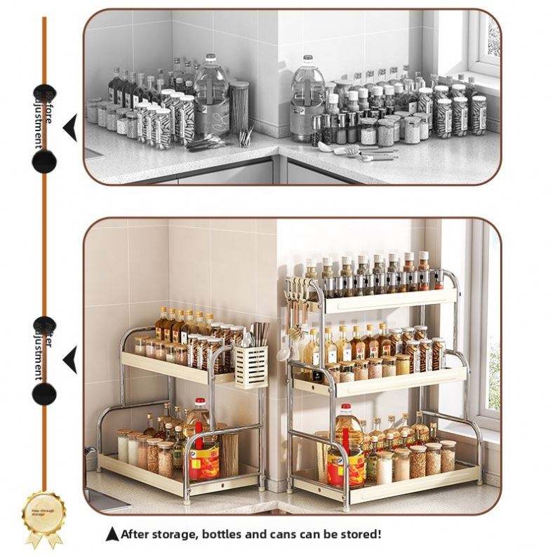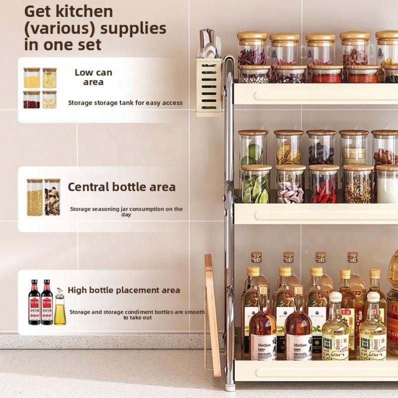 Modern 3-Layer Countertop Spice Rack Carbon Steel Kitchen Storage Organizer Chopsticks Holder for Kitchen Accessories Storage