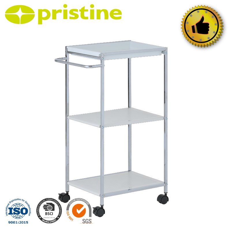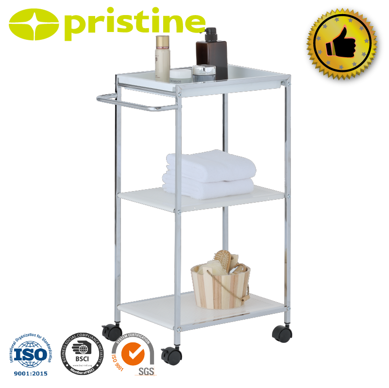 Modern 3-Tier Chrome Plated Metal Bathroom Shelf Wheels Freestanding Corner Design Durable Space Saving Household Storage