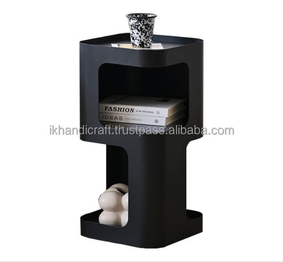 Modern 3-Tier Metal Nightstand Space-Saving Accent Side Table for Small Spaces Bedside Table Storage Shelf Bedrooms Living Rooms
