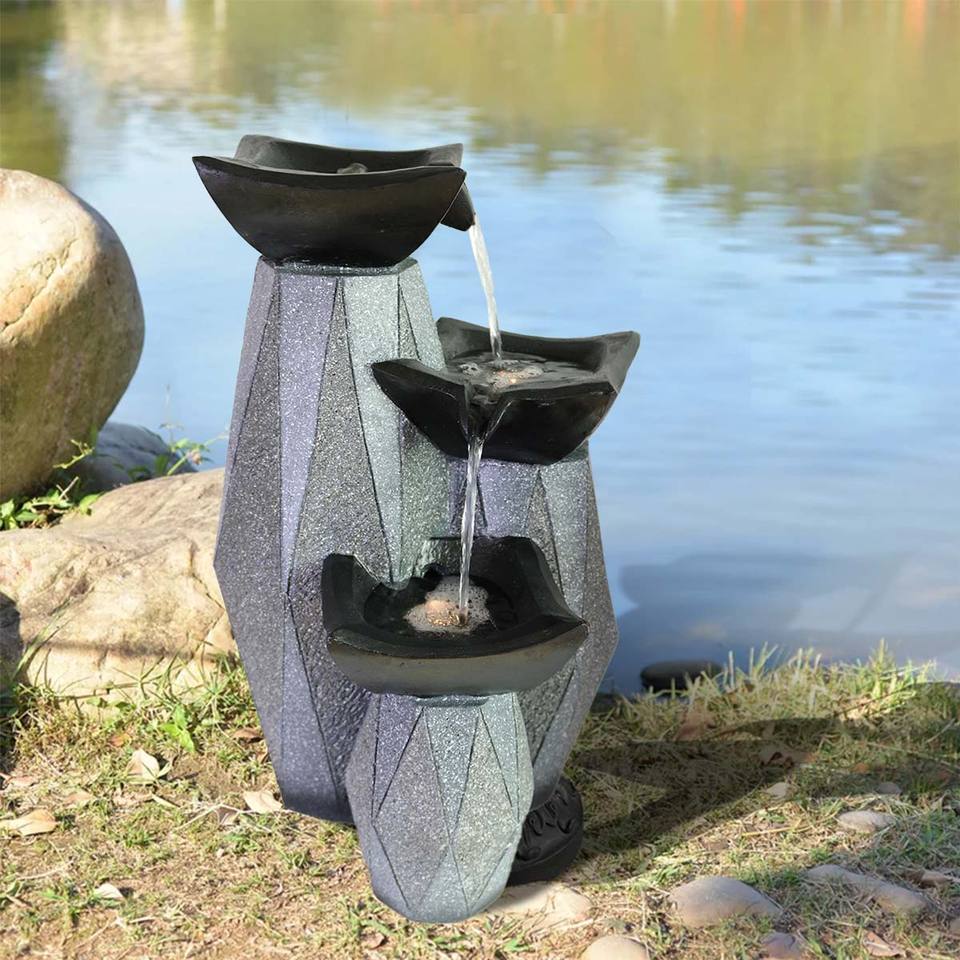 Modern 3-bowl Solar-powered On-demand Outdoor Tiered Fountain Waterfall Fountain