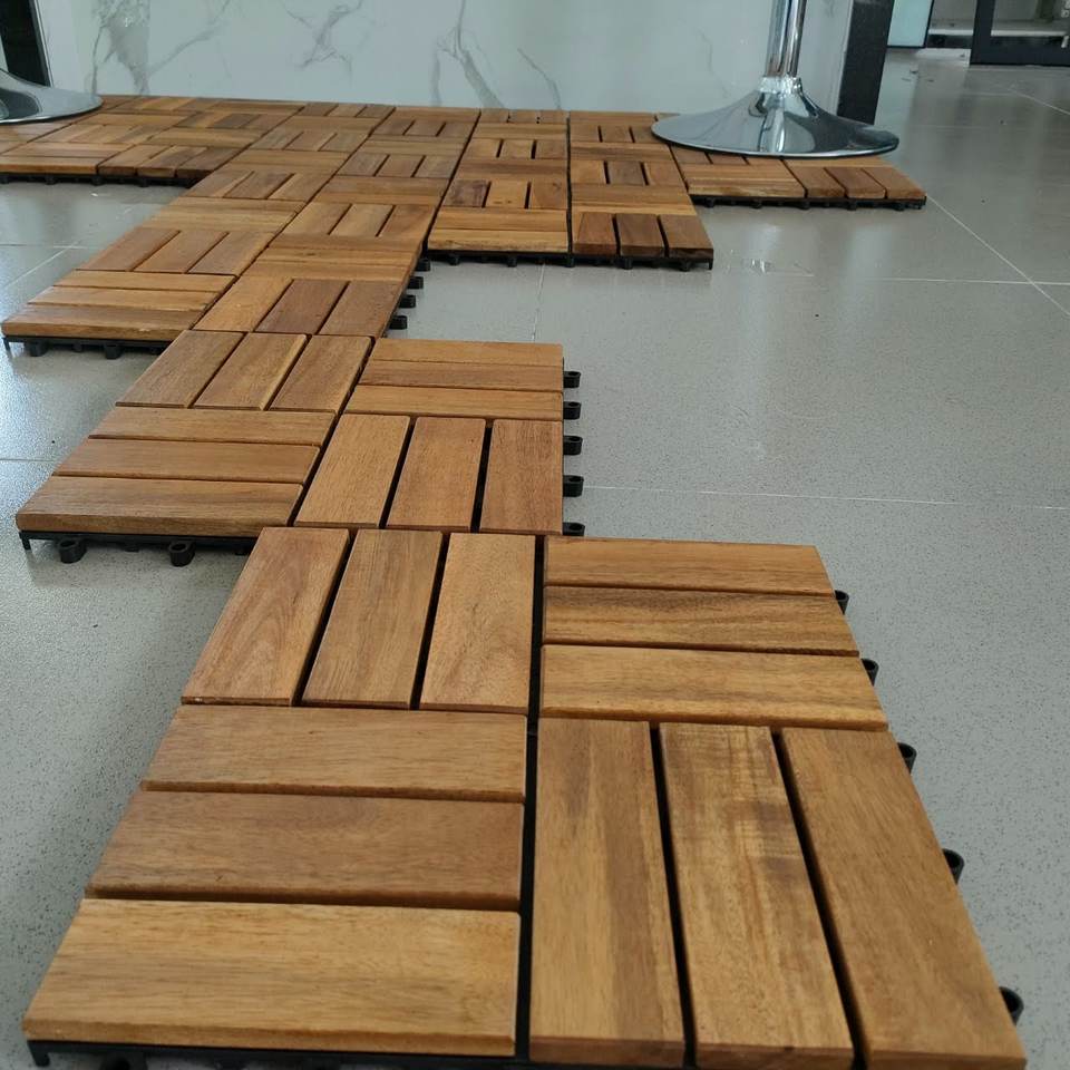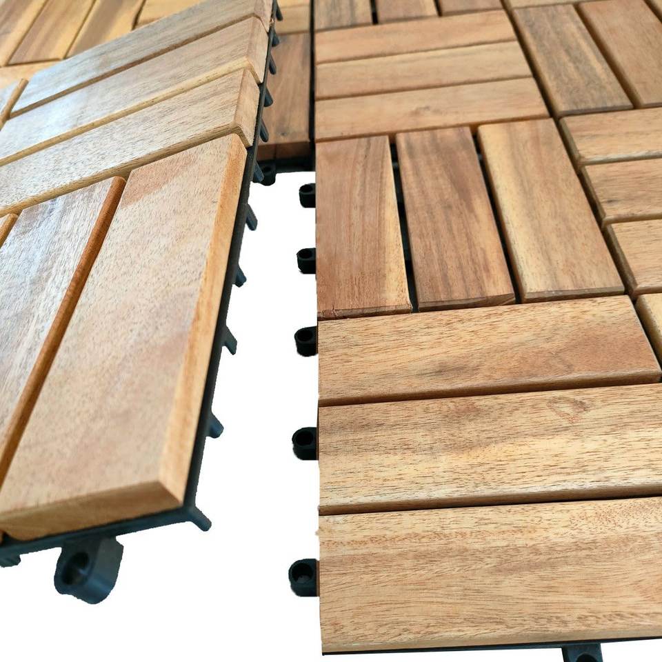 Modern 300*300mm DIY Wood Decking Tiles 12mm Acacia Material Waterproof for Indoor Outdoor Home Garden Smooth Terrace Backyard