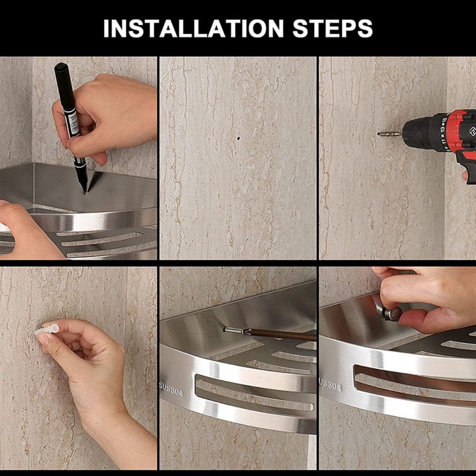 Modern 304 Stainless Steel Wall-Mounted Corner Bathroom Storage Shelf Polished Finish Foldable Adjustable Design 3-Year Warranty