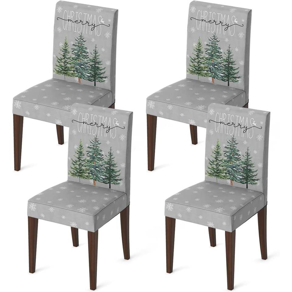 Modern 4-Piece Christmas Dining Chair Slipcovers Snow Tree Design Stretch and Removable Washable in Stock
