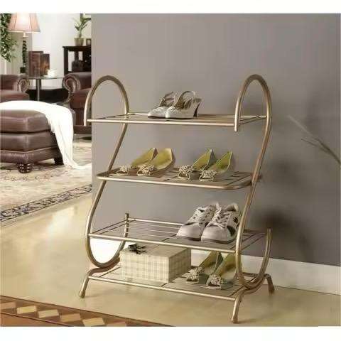 Modern 4 Tier Metal Shoe Rack Gold Wrought Iron Shoe Organizer Stand Luxury Multi Layer Footwear Storage Shelf For Home Entryway