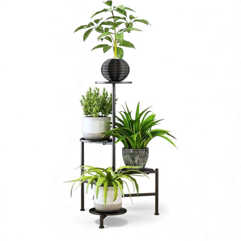Modern 4-Tier Round Step Metal Plant Stand Black Indoor/Outdoor Pot Display Rack for Home Garden