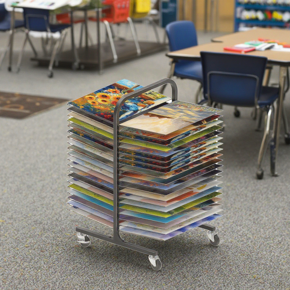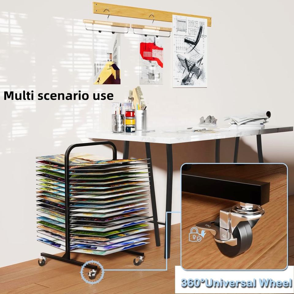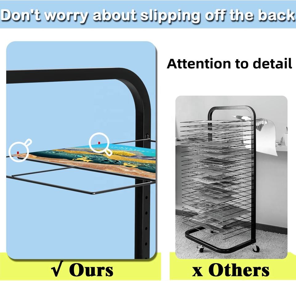 Modern 40 Unit Oil Painting Paper Picture Drying Rack Double Sided Metal Wire Display Stand for Art Classroom Magazine Storage