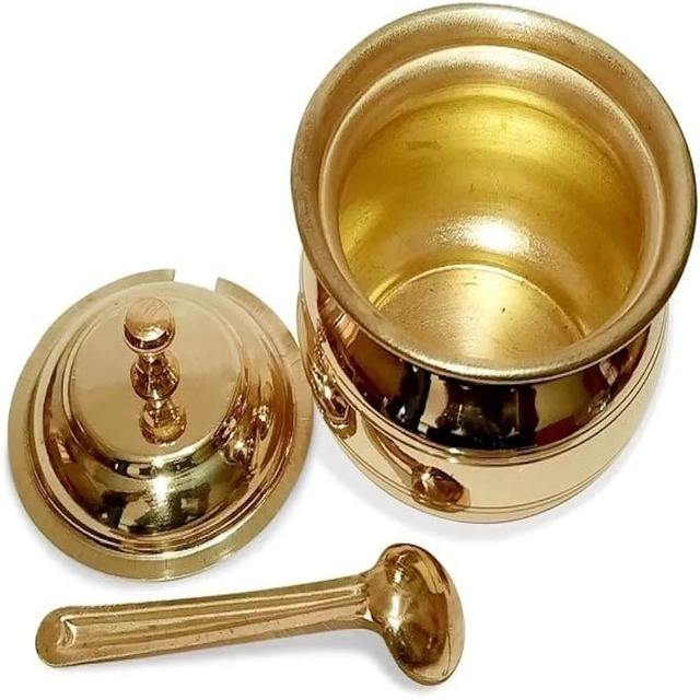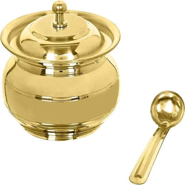 Modern 400 ML Eco-friendly Metal Pot with Embossed Designer Spoon Lid Pickle Soup or Multipurpose Storage Basket for Home Use